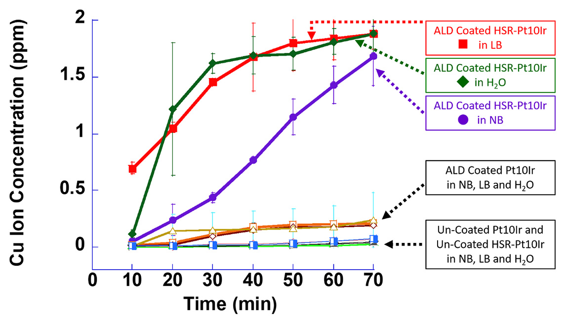 In studies involving copper oxide (CuO), the antibacterial coating preserved the underlying hierarchical HSR™ structure and had minimal impact on electrochemical behavior.