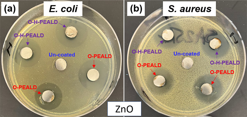 Antibacterial activity was also demonstrated under dark conditions relevant to implanted-device environments. These results suggest that ZnO coatings can introduce antibacterial functionality while maintaining—and in some cases enhancing—the effective electrochemical behavior of the underlying hierarchical surface.